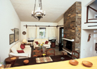 Две спальни (одна находится в мансарде), гостиная с хорошо оборудованной кухней (холодильник, тостер, кофеварка, микроволновая печь, электрическая духовка), камин, кондиционер, спутниковое телевидение (российский канал), телефон, музыкальный центр, душевая/WC, утюг, пылесос, фен, шампунь и мыло.
